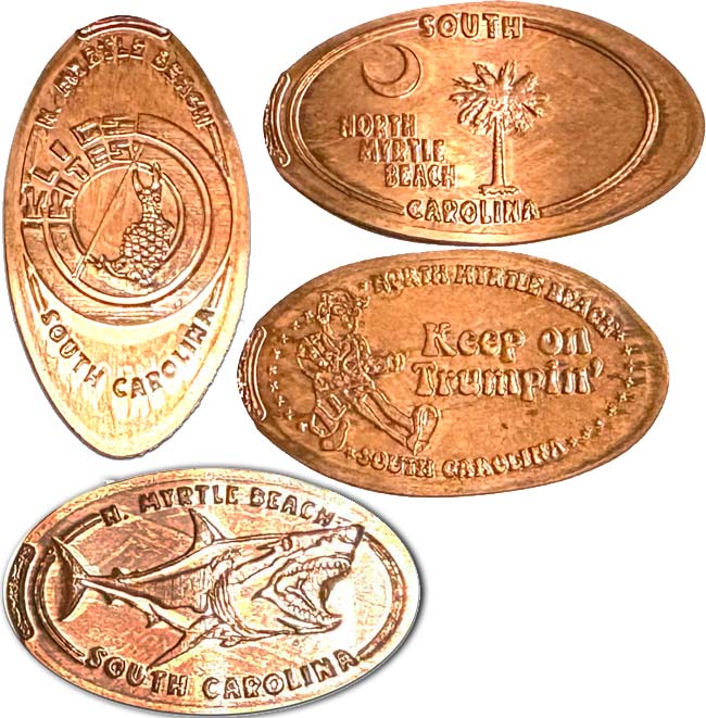 All have 'N/North Myrtle Beach South Carolina' on them. All designs cost $1.01 in quarters and a penny. Designs are: