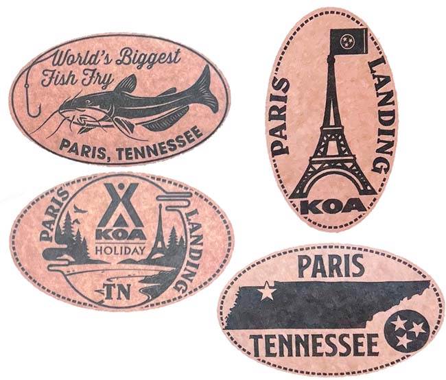 3) 'Paris Landing KOA, Holiday, TN', Area with Eiffel Tower and forest,