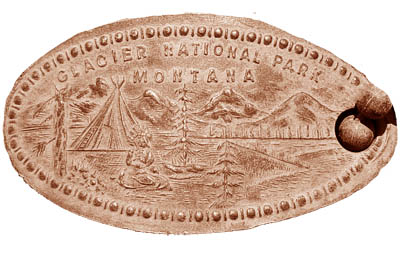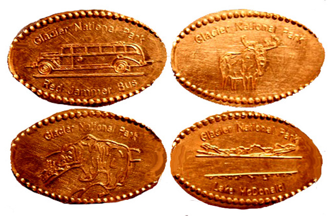 They have Penny Books on top of the Machine, and on the shelf. They are Navy blue, with ''Penny Collection Travel Album'' in gold letters, and a picture of a bald eagle surrounded by stars, holding arrows and an olive branch in its talons, on top of The American Shield, with a sash that reads ''Souvenir Penny Collection Album. They are $3.99 each, and are also available at West Glacier Gifts in West Glacier.