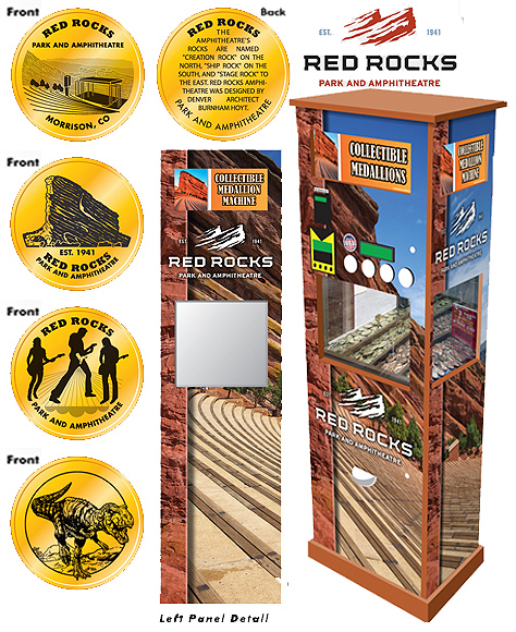 Token Machine 2: - (2016) All except design 4 have 'Red Rocks Park and Amphitheatre' on them. Backs all have 'Red Rocks Park and Amphitheatre' and a description on them.