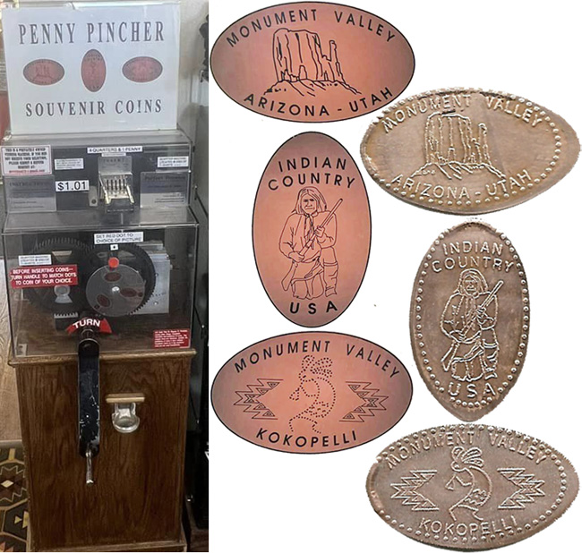 Machine 4: Located inside the lobby of The View Hotel. All have 'Monument Valley Navaho Tribal Park' on them. 4 Horizontal designs: