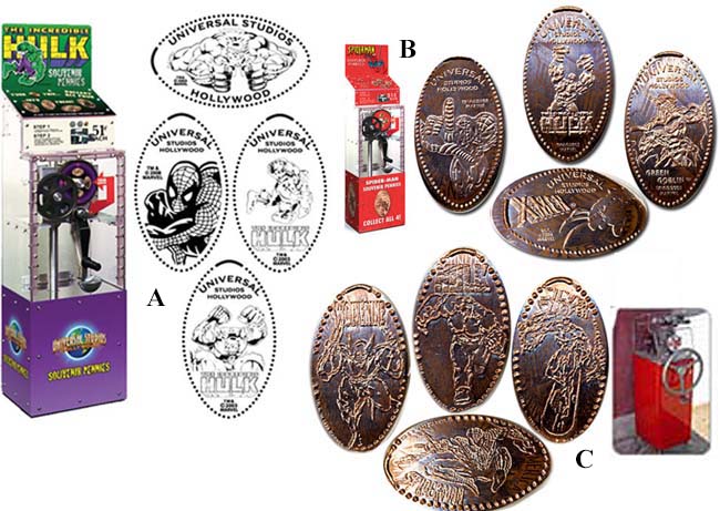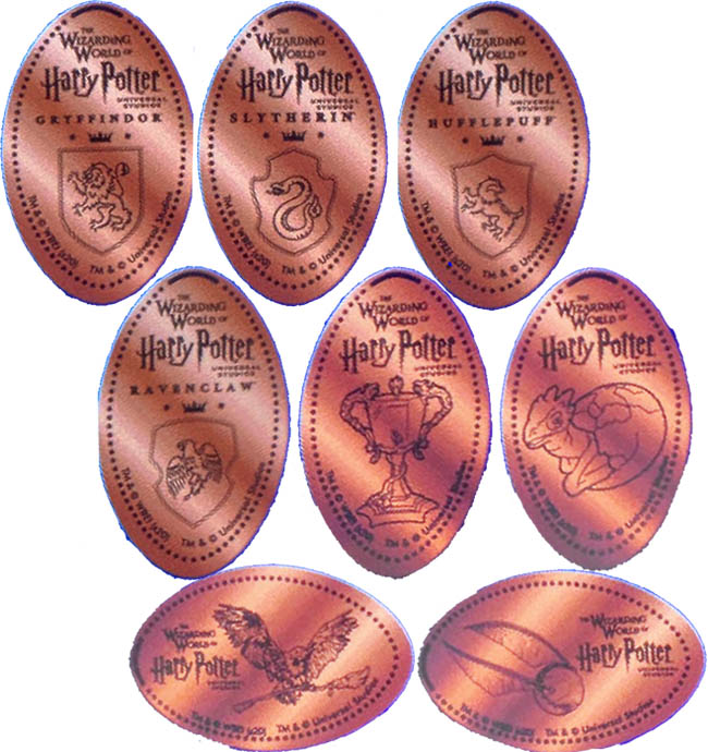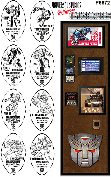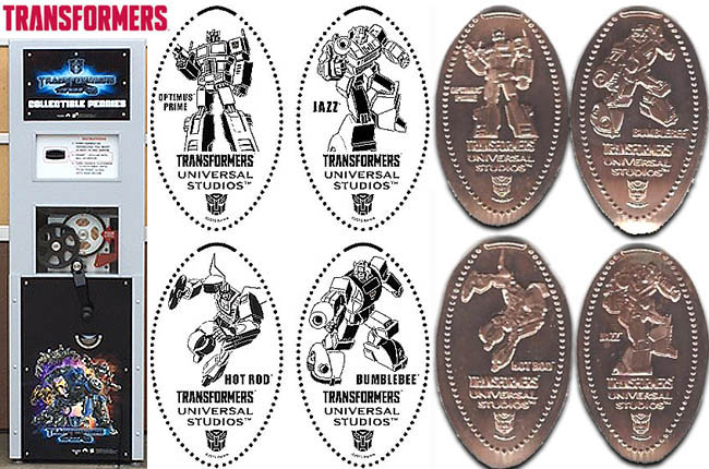 The Transformers 8-design machine is still located at the Universal Studios Store. The 3rd machine with the 4 designs that have the Transformers logo centered under each design could not be found. Also located at the Universal store inside the park is the “Harry Potter 2” machine.