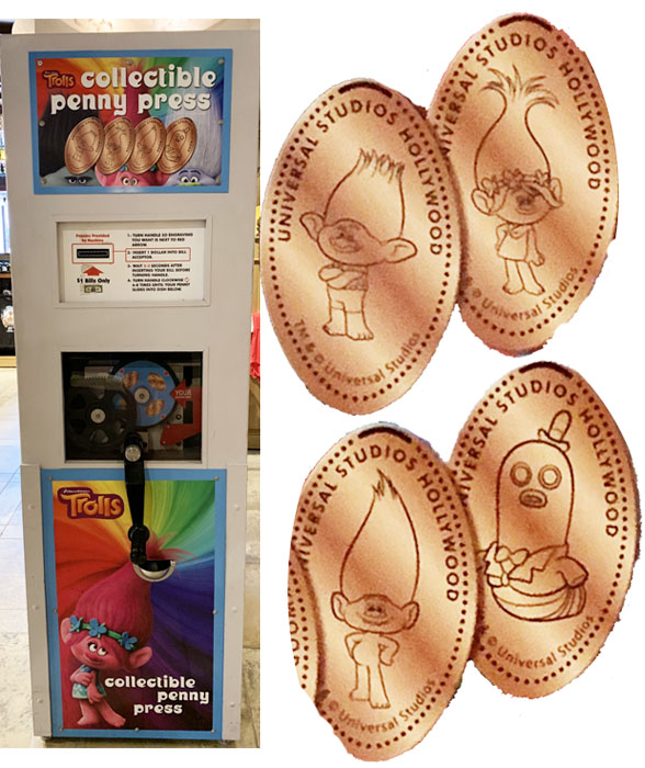 B) Trolls machine (2021) - There is a 4-design Trolls machine by the Trolls items near the register: 1) Branch, 2) Poppy, 3) Guy Diamond, 4) Mr. Dinkles. Takes dollar bills only.