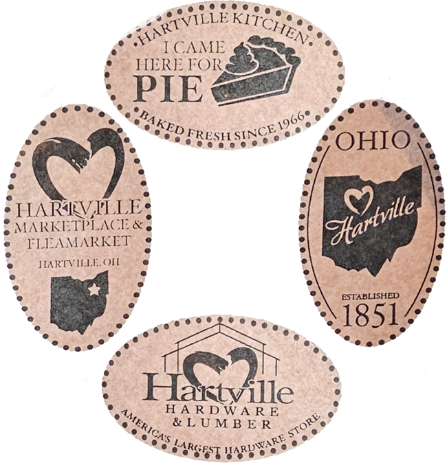 4) Ohio with heart logo and Hartville - 'Ohio, Established 1851'.