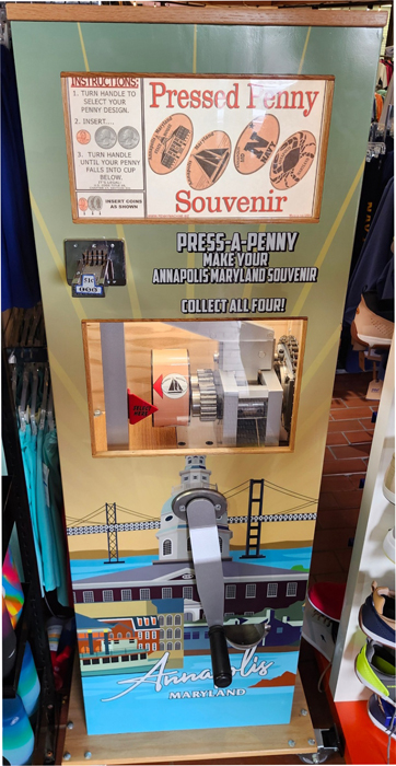 Designs are: 1) A Crab, 2) A Sailboat, 3) A Navy logo, 4) The Statehouse.