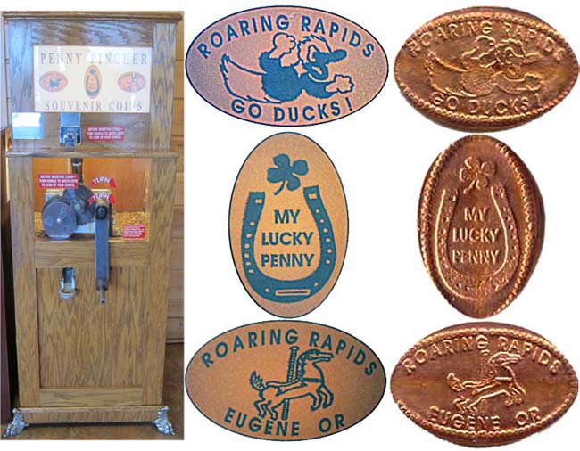 2. (V) A four leaf clover above an upturned horseshoe with 'My Lucky Penny'.