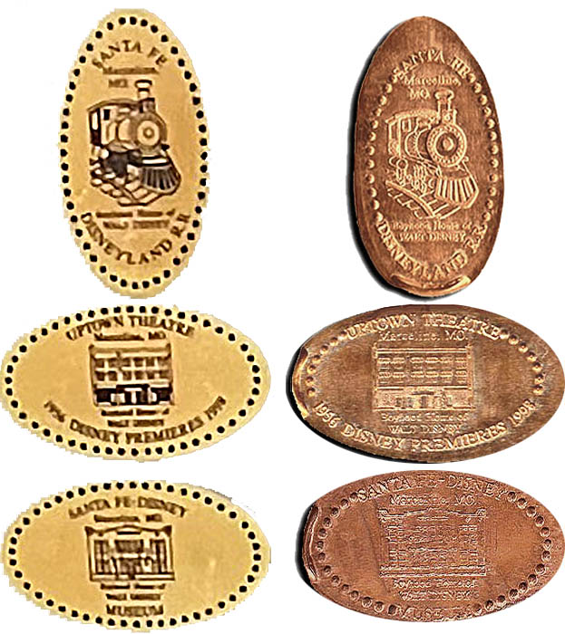 2) Picture of the train station/Disney Museum and says. "Santa Fe-Disney Museum / Marceline, Mo / Boyhood Home of Walt Disney."