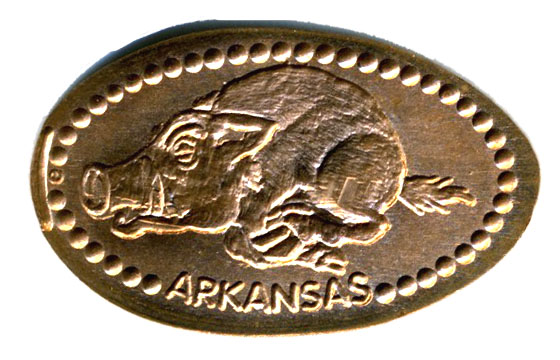 364 Central Avenue Hot Springs, AR This is a one-die machine and contains the same design of a Razorback hog as is on the three-die machine located at National Park GIfts and Souvenirs. Located inside near the counter.
