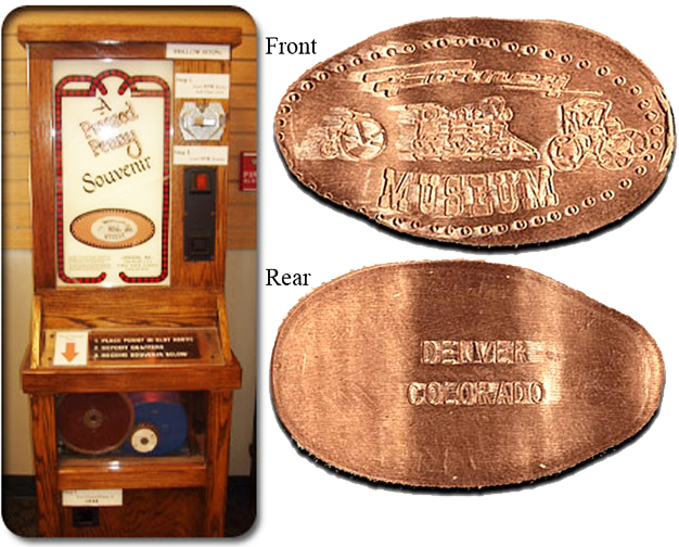 Machine 1: Front: "FORNEY MUSEUM" old bicycle, train engine, old car. Back: "DENVER COLORADO" |