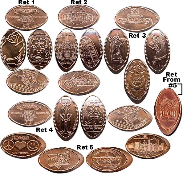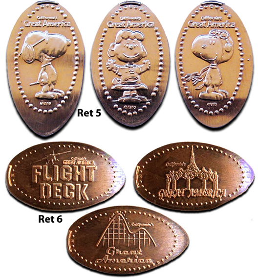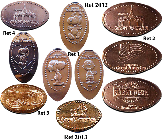 Retired 4: - (2 designs retired) 1) Carousel top with Park Name under & State name on the upper left, 2) Snoopy inside a Heart