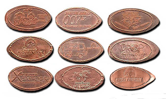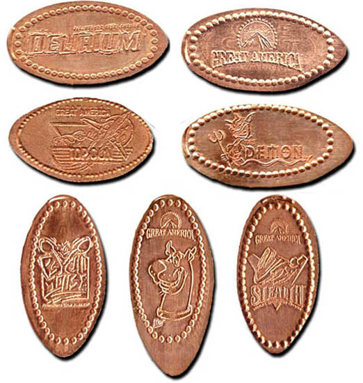Retired 9 (2009) 1) Carousel top with Park Name under & State name on upper left, 2) 'Vortex' roller coaster name, 3) Ride Name, Flight Deck, in Instrument panel.