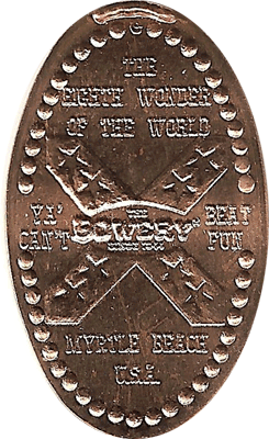 1) A vertical elongated with "The Bowery" in the center, "the eighth wonder of the world" at the top, "ya can't beat fun" across the middle, and "Myrtle Beach USA" on the bottom