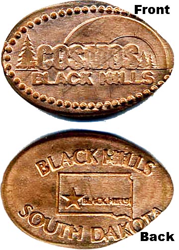 1) Front says 'Coismos Black Hills: Reverse says Black Hills South Dakota with an image of South Dakota