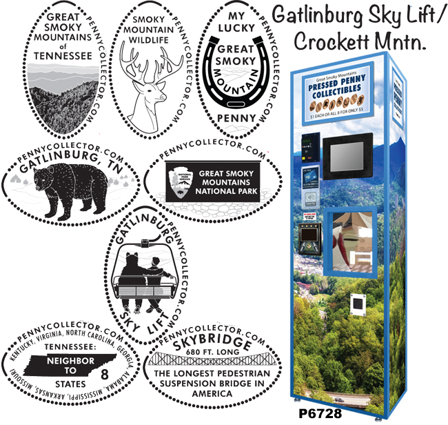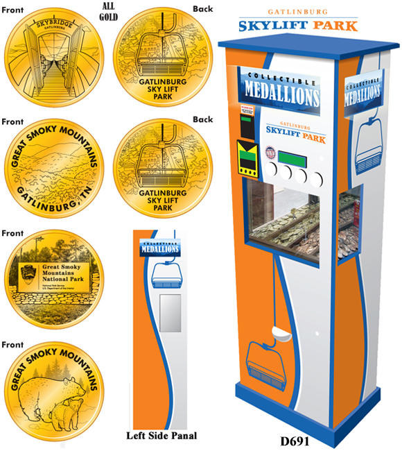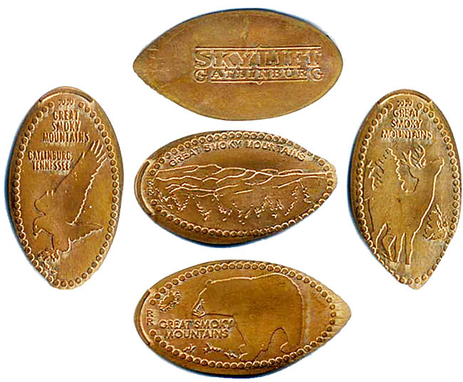 Retired 1: all have 'Skylift Gatlinburg' on the reverse: 1) Bear, 2) Eagle, 3) Elk, 4) Mountain Scene