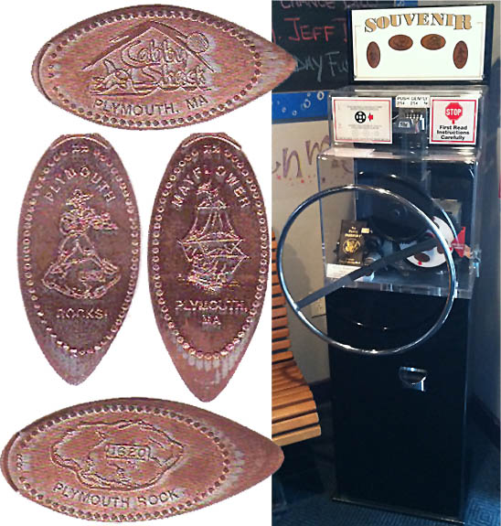 10/18/12 Machine working, but second penny did not drop all the way. After asking for a manager, we 'bumped' the machine a tad and the penny fell into place. The rest were fine. Tails are extremely long, one was almost 3/8 inch, the others 1/8 to 1/4 inch. The reverse of the pennies is inscribed 'www.jeffseaberg.com artist'. |