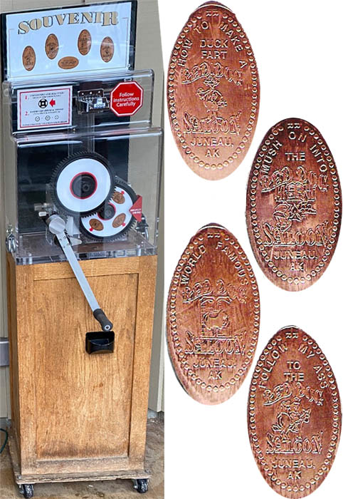 A two design Token machine just outside the door to the gift shop, (1 for $3, 2 for $5).
