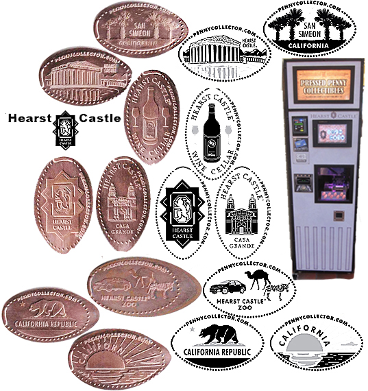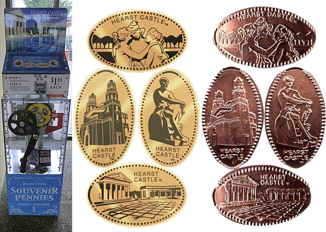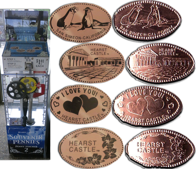 Machine 1: Cost to press: $1.01 each design. Designs all have a beaded border with 'Hearst Castle™':