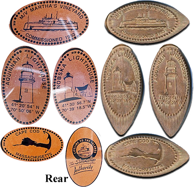 Machine 1: is located on the M/V Nantucket (runs between Woods Hole and Oak Bluffs MV) near the Cafeteria. Designs are: