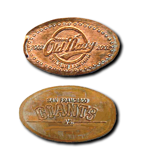 There was a different die for every team that played in the park on game day from between years of 2000 to 2005. There were about 20 different Teams/ designs for each year. There were also two machines for each game putting out the same designs. The designs had the same back, 'Old Navy' except when the years changed. The fronts were almost the same except the opposing team names.