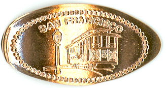 I found this in Monterey, CA in an upstairs mall shopping area (Across from Bubba Gumps) in a locked fenced off storage area with 4 other San Francisco penny design machines in about 2008 or 2009. Unknown where they went from there. I went there a year later and the storage area was gone, remodeled into a store area. |