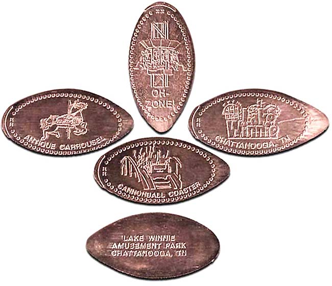 Designs all have 'Lake Winnie Amusement Park Chattanooga, TN' on back.