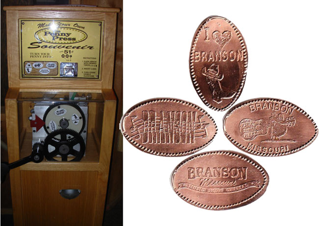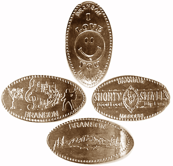 .75 per penny and the music note one is off center. Shorty Small's has a brand new location on 76 Blvd next to the Andy Williams Moon River Theater. And, a new machine with new designs!