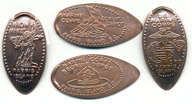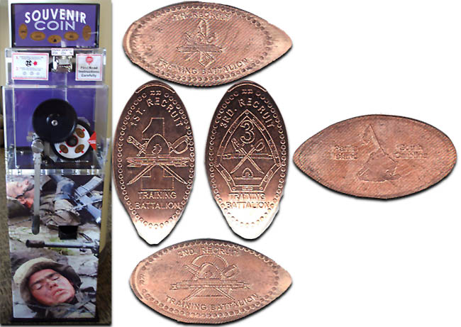 Machine #2 is next to the food court at the MCX. (a 4 design mule). All have Parris Island, South Carolina' with the Marine WWII Iwo Jima flag raising on back. Designs are: