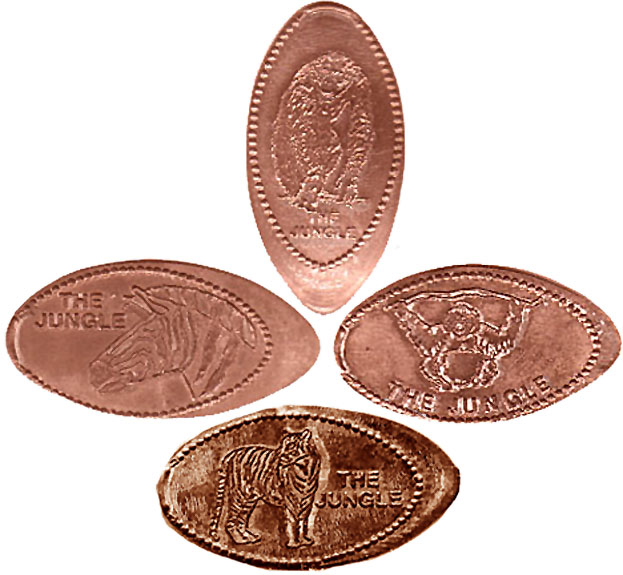 Designs: with text 'The Jungle' 1) Zebra, 2) Gorilla 3) Monkey hanging from a branch 4) ???