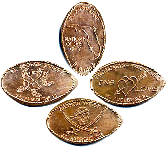 Designs: 1) Pirate skull 2) Turtle 3) State of Florida 4) Hearts (one love)