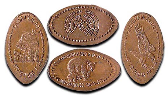 The machine is inside the visitors center/gift shop near the lookout. It's on the right when you go in. Designs are: