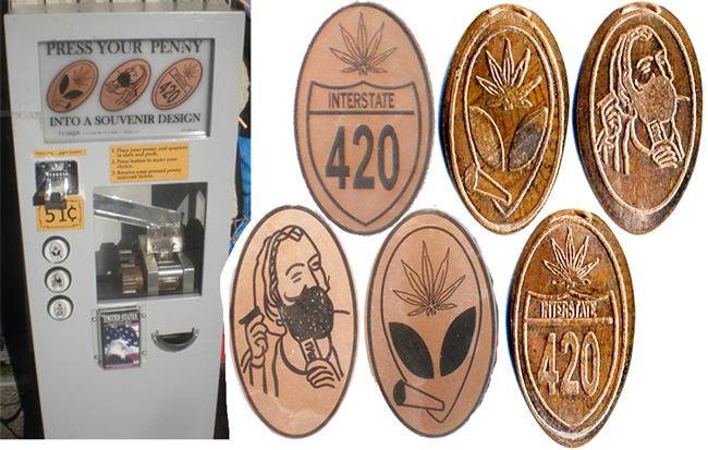 Retired 1 Designs (All similar to Retired 5) :1) Interstate 420 sign with pot leaf above, 2) Alien head smoking a blunt and has a pot leaf on its forehead, 3) Hippie.