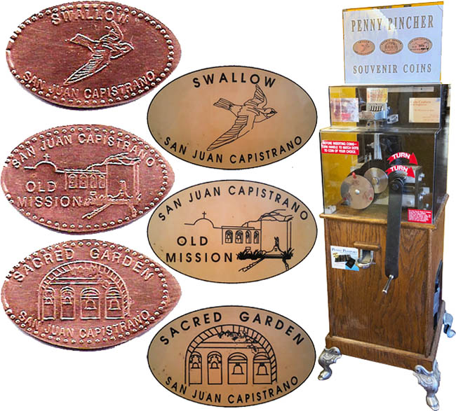 Hours of operation: Tuesday, Saturday and Sunday 10:00 am to 6:00 pm, Monday, Wednesday through Friday 10:30 am to 6:00 pm. This penny machine used to be across the street at the Mission San Juan Capistrano.