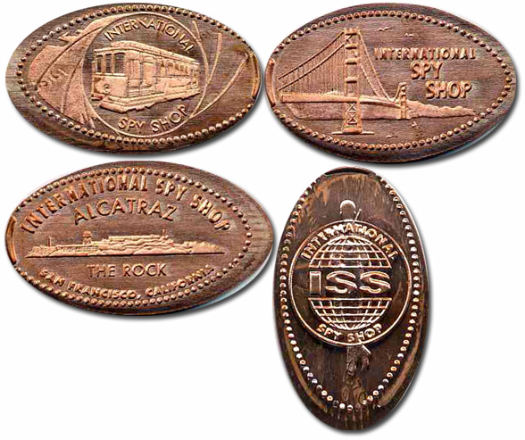 1) "International Spy Shop" name inside circle with a Cable Car in the middle.