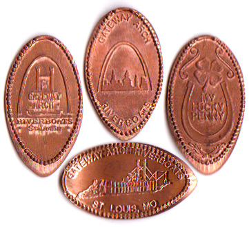 Retired 1: 1) Arch with riverboat inside, 2) Arch with City skyline inside, 3) Riverboat, 4) My Lucky Penny.