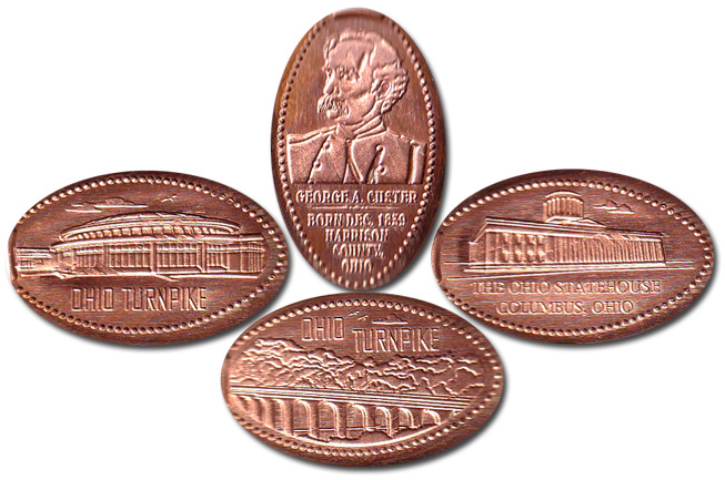 Retired 1 Designs: 1) George A Custer, 2) Ohio Turnpike, Bridge, 3) Ohio Statehouse, 4) Ohio Turnpike, Building