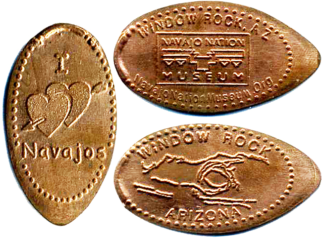 1) The rock formation of Window Rock with "Window Rock" above and "Arizona" below the image (horizontal).