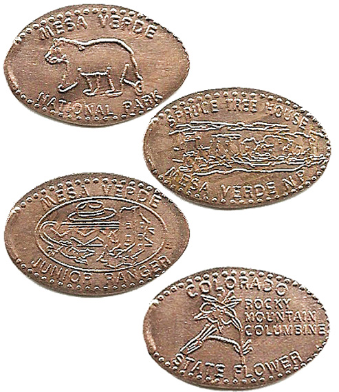 Retired 4: 1) 'Mesa Verde National Park', Bear, 2) 'Mesa Verde Junior Ranger', 3) 'Colorado State Flower, Rocky Mountain Columbine', 4) 'Mesa Verde NP, Spruce tree House'