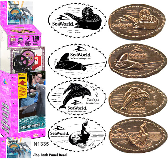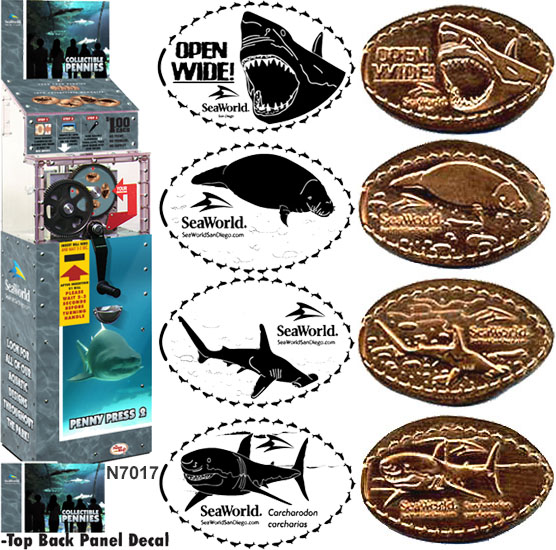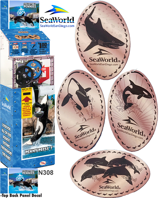 Found new medallion machine at Reef Gifts (Bottlenose dolphin, King penguin, Great white shark, Orca whale). Medallions are 1 for $5, 2 for $10 or 4 for $18 -CHN |