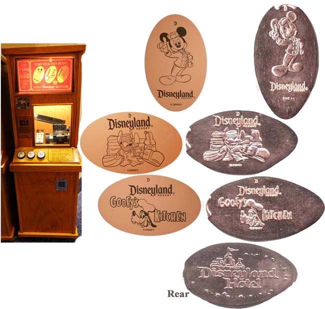 Machine 2 (Placed 2010) is across from Goofy's Kitchen. Cost to press: 51¢ each design. (DR 130 to DR132). Designs: