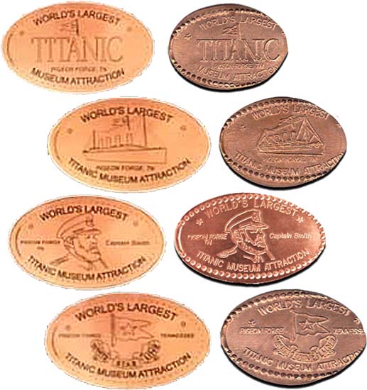 Rear of all designs: Pennant with 'Titanic Pigeon Forge, Tennessee'.