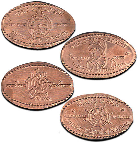 Retired 1: 1) (H) Pocket Watch with 'World's Largest Titanic Museum Attraction', 2) (H) Jaynee with 'World's Largest Museum Attraction', 3) (H) Titanic 100 Years, 4) (H) Ship's wheel with 'World's Largest Titanic Museum Attraction'.