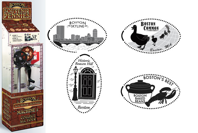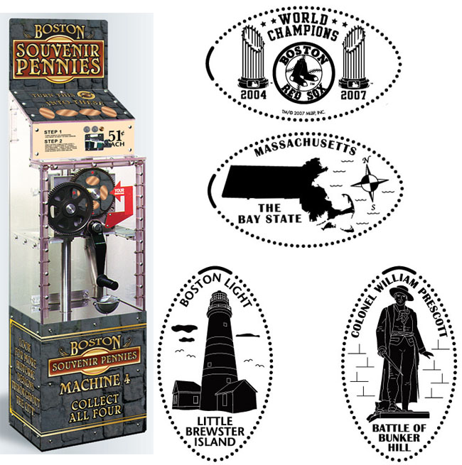 Retired 1: 1) Faneuil Hall Baston, Ma, 2) Lucky Penny, 3) Zakim Bridge 4) The Ride of Paul Revere. Note, the lucky penny design replaced a Fenway Park design.