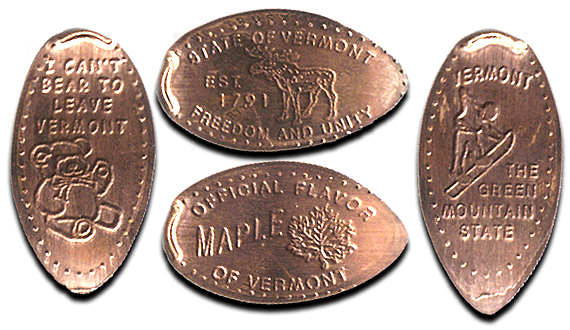 1) 'I Can't Bear to Leave Vermont', 2) 'State of Vermont, Freedom and Unity, 3) 'Official Flavor of Vermont, Maple', 4) 'Vermont, the Green Mountain State'.