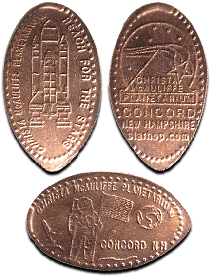 1) 'Reach for the Stars', Space Shuttle, 2) 'Concord New Hampshire, stathop.com', logo, 3) 'Concord New Hampshire', Astronaut on Mpoon, US Flag, Earth.