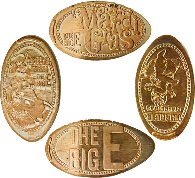 1) woman riding bull 2) alligator Mario gras 3 ) the Big E. 4) Mario Gras |