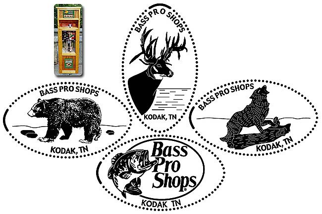 3629 Outdoor Sportsmans Place (I-40 exit 407) Kodak, TN , 37764 Phone: 865-932-5600 Website The machine is located at the top of the stairs on the second level next to a change machine at the shooting gallery. The designs are: