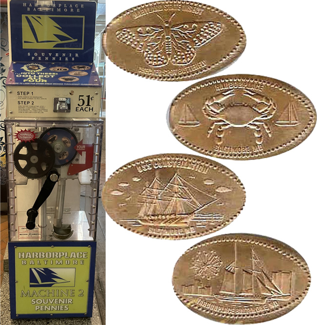 There are two Harborplace Pavilions, just feet away from each other. Harborplace Light Street Pavilion (which houses the two machines) is located at 301 Light Street, Baltimore, MD 21202. The nearby Harborplace Pratt Street Pavilion is located at 201 East Pratt Street, Baltimore, MD 21202. The Pavilions are open from Monday through Saturday, from 10:00am until 9:00pm, and Sunday from 12:00pm until 6:00pm. The building entrances face the water.
