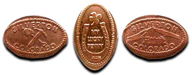 1) Crossed pick and shovel with Silverton, Colorado; 2) Profile of train with Silveron; 3) My Lucky Penny (vertical)
