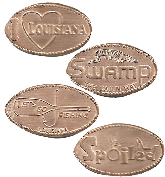 Moved 1: 1) 'Louisiana', Saks with the words New Orleans, 2) 'Louisiana', A Stream boat, 3) "The Big EZ New Orleans', 4) "I Love You, Louisiana '.