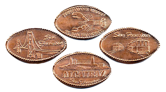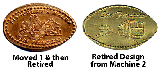 Retired 3 Designs, 1) Alcatraz, 2) Golden Gate Bridge, 3) Lobster, 4) Cable Cars